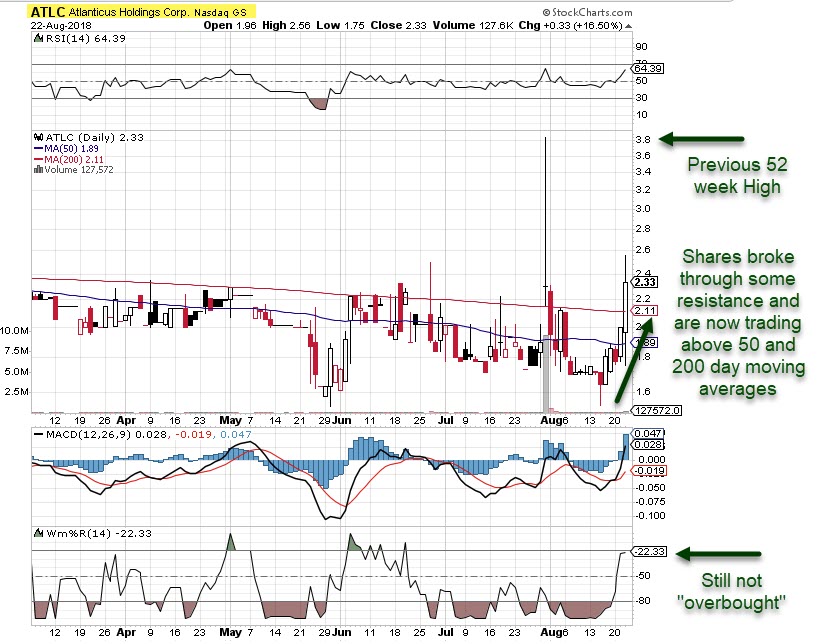Adding to the intrigue here is the possibility that the company themselves may be buying shares and helping to extinguish the already tiny float. A share repurchase plan authorized by ATLC’s Board of Directors on May 10, 2018, authorized the company to repurchase an additional 5,000,000 shares of their common stock through June 30, 2020.