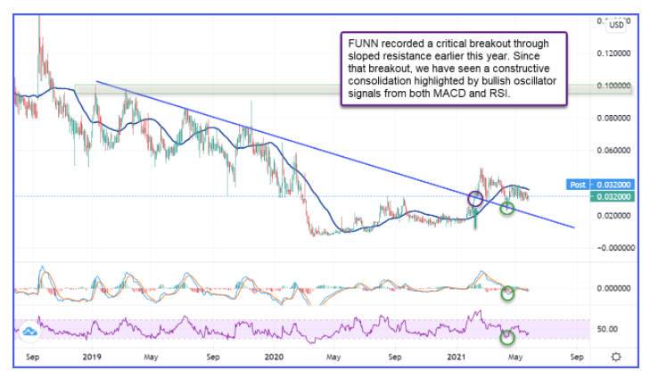As growth catalysts mount for FUNN and the macro context improves due to reopening tailwinds, shares of the stock appear to be potentially technically poised for further upside: