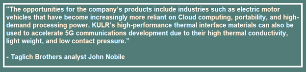 - KULR has become a pioneer in thermal (cooling) management technology with its carbon fiber thermal interface material. The material offers superior thermal conductivity and heat dissipation properties. It is ultra-lightweight and flexible in that it can fit most power or electronic configurations, and was designed for space exploration and defense applications where efficient cooling is paramount.