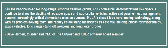 - Hypersonics are a top research-and-development priority for the Pentagon. A Congressional Research Services report in December 2020 shows that the Pentagon’s FY2021 budget request for all hypersonic-related research is $3.2 billion, up from $2.6 billion in the prior year’s request. KULR is adapting its technology to serve the needs of next-generation hypersonic weapons!