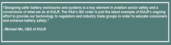 As the exclusive provider of ISC technology to the FAA, KULR’s devices will address the alarming increase in smoke and fire incidents aboard an aircraft due to passengers’ malfunctioning lithium-ion batteries.