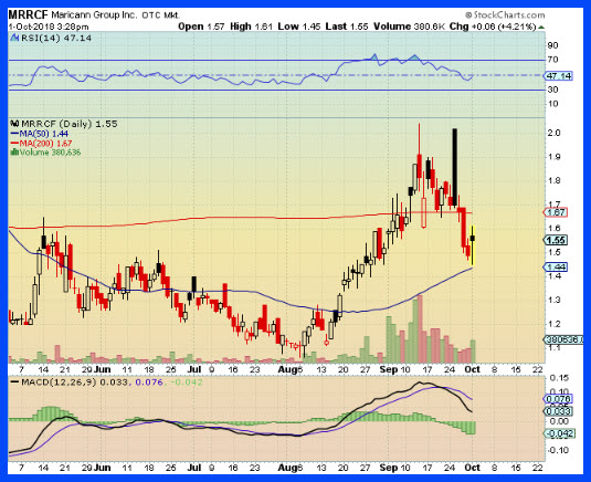 - MRRCF is coming off an RSI trough under 50, pointing to a massively oversold stock now heading back the other way.